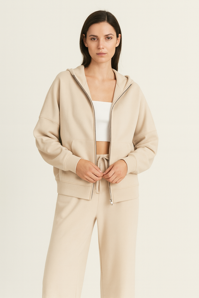 Soft Modal Scuba Mix High Neck Zip-up Jacket
