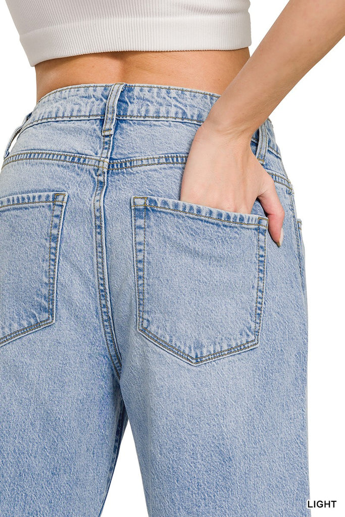 HIGH-RISE CUFFED WIDE-LEG DENIM PANTS - WIDE LEG - WIDE CUFF