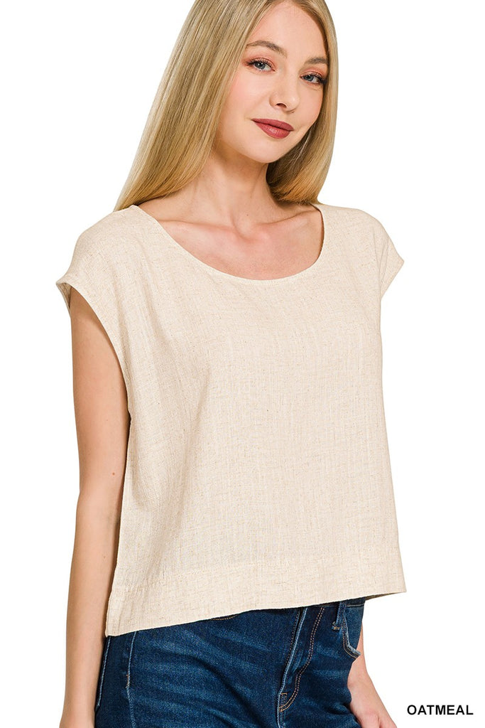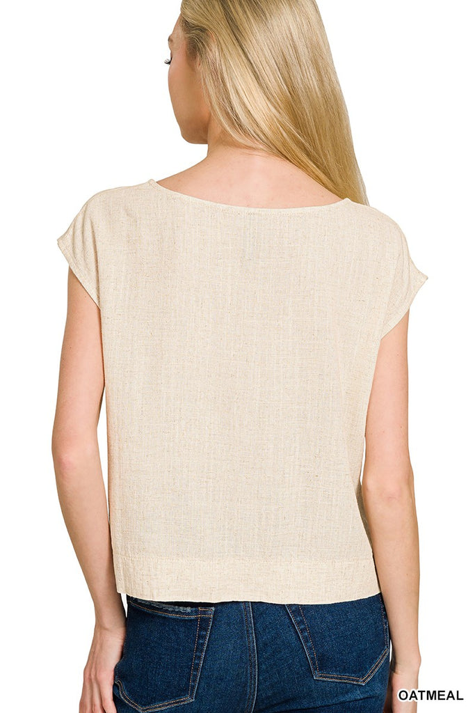 Linen Blend Boat Sleeve Top