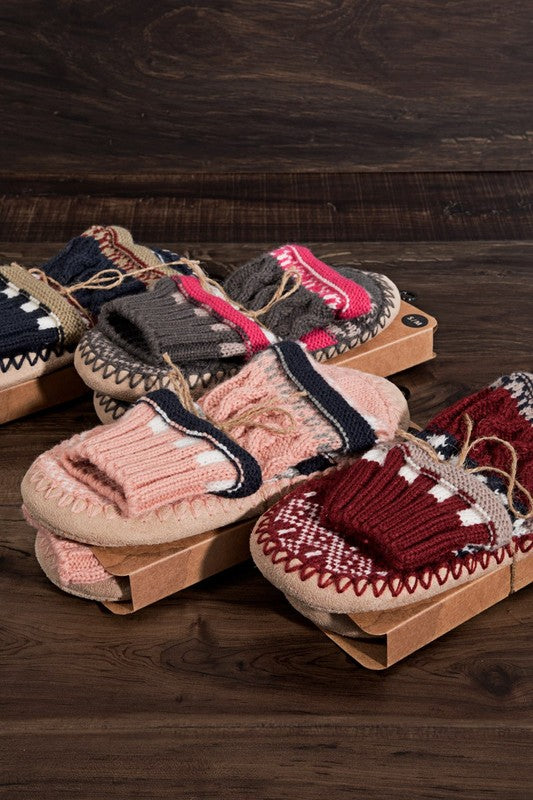 Nordic pattern jacquard knit slipper socks with cushioned non-slip grip sole