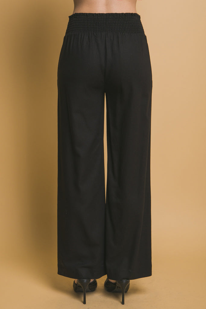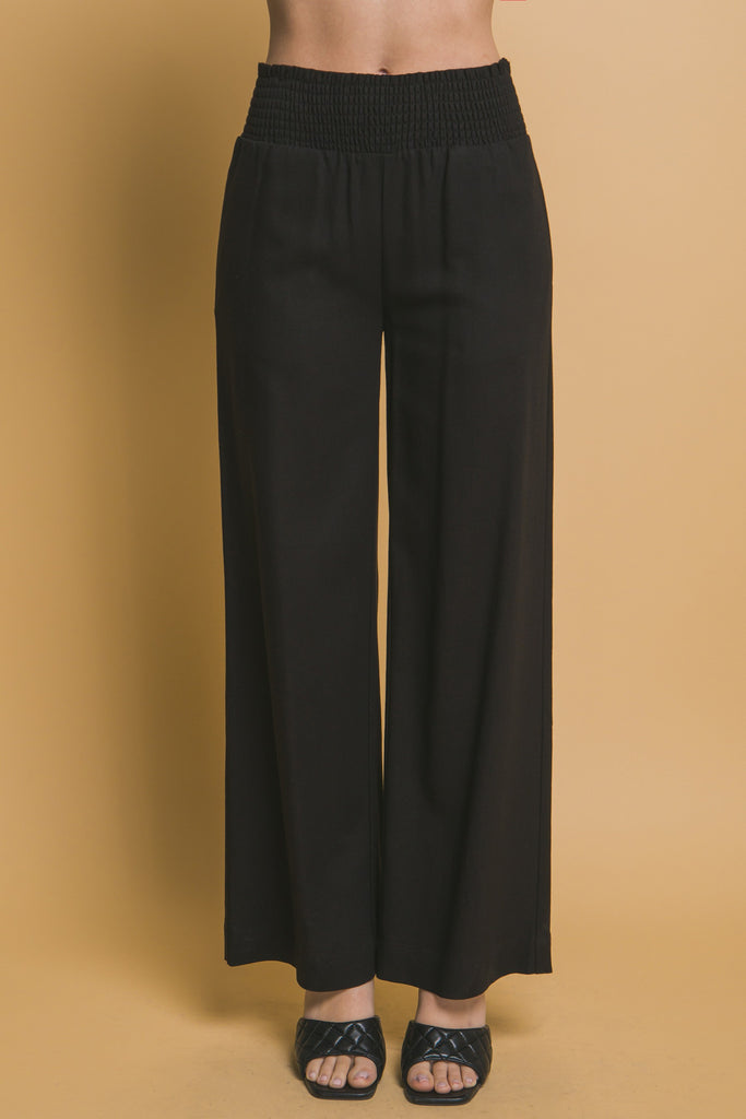 The shirred waist pants offers a flattering casual look that features a relaxed