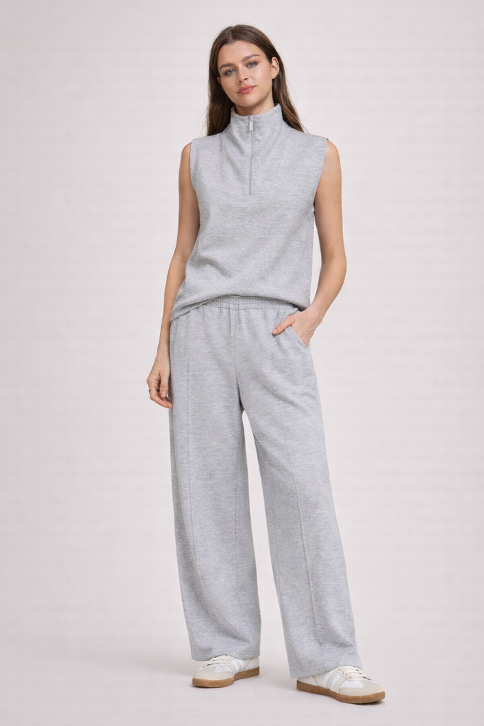 ELASTIC WAIST SOFT MODAL SCUBA WIDE PANTS WITH CENTER PINTUCK SEAM AND POCKETS