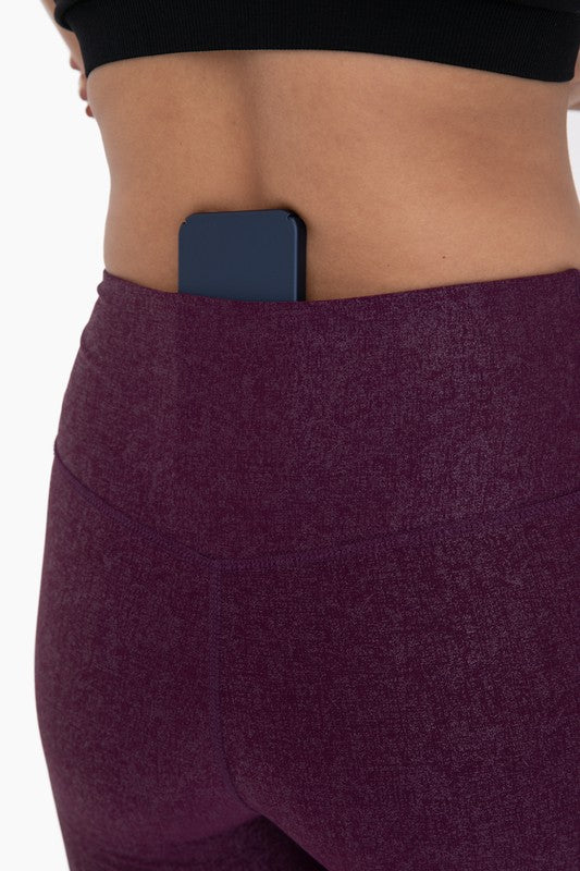 Crossover flared pant with a foil print for an edgy faux leather look.