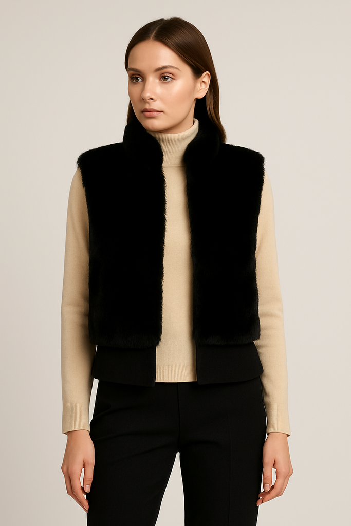 Faux Fur Zipper Solid Vest