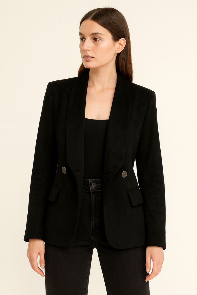 Suede Solid Double Breasted Shawl Lapel Jacket