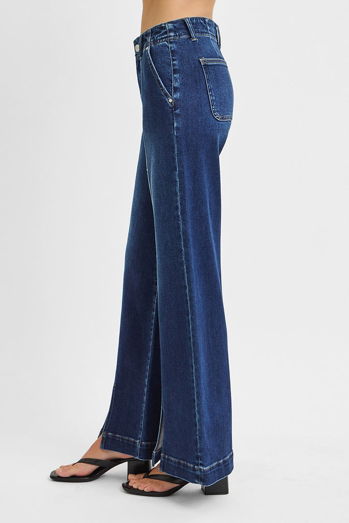 TUMMY CONTROL HIGH RISE WIDE LEG WITH FRONT SLIT JEANS